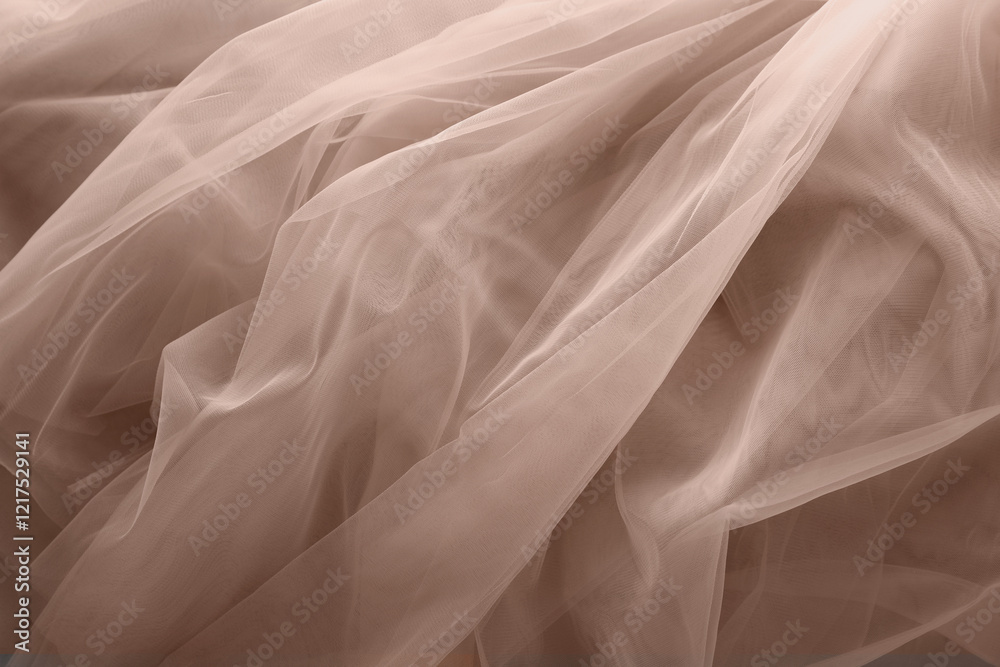 Tulle fabric in mocha mousse shade, closeup. Trendy color of 2025 year