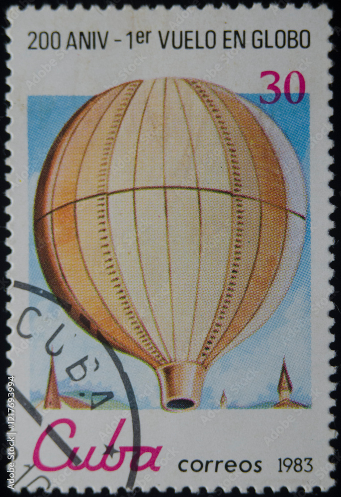 Postage stamp, Cuba, 1983, balloon, probe, airship.
