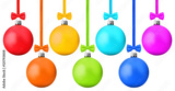 colored сhristmas balls with bow hanging on a ribbon clipping
