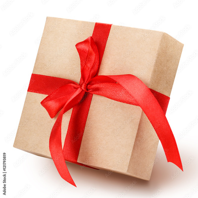gift box with a red ribbon and bow clipping path