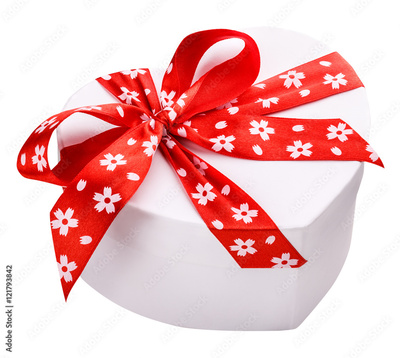 white gift box with a red ribbon and bow clipping path