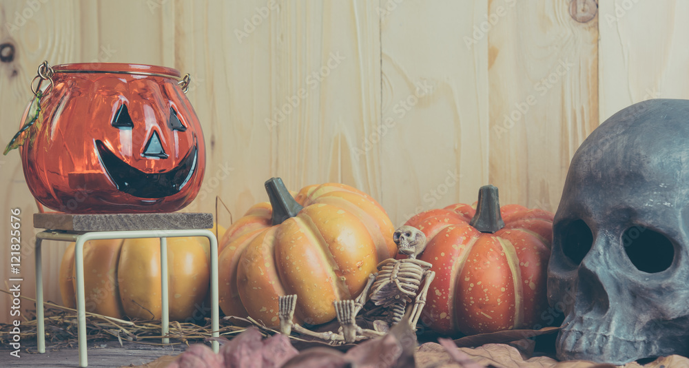 Halloween pumpkin any vary ornament on wood