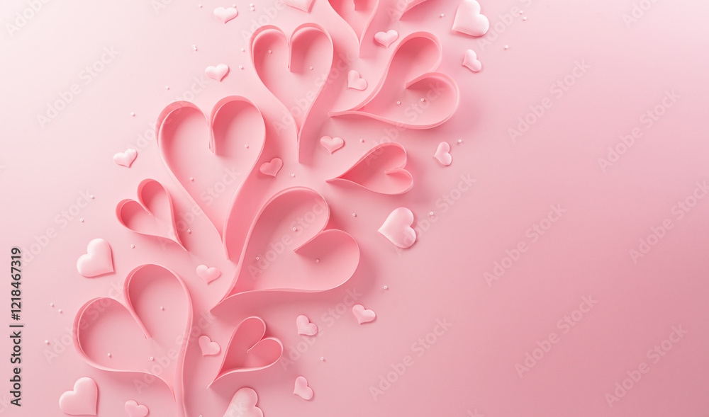 Happy Mother's day, Valentine and Women's Day decoration concept made from paper heart on pastel background.