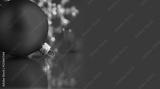 Golden and red christmas ornaments on red background with copy space. Merry christmas card. Winter holidays. Xmas theme.