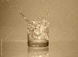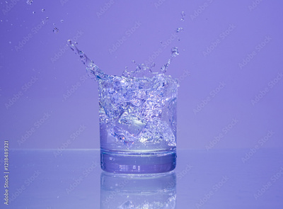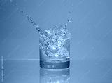 ice cube falling into glass of water with splash