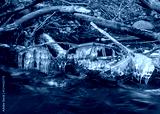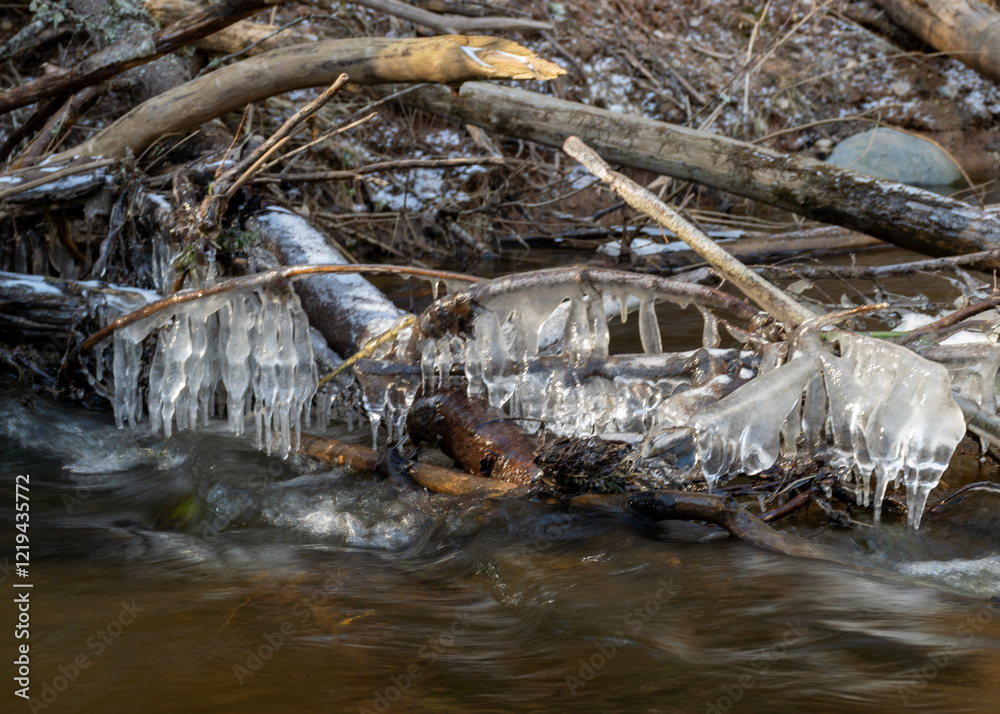 ice formations in a wild river, beautiful frozen ice formations from the interaction of water, flow and frost, Raunis, Latvia