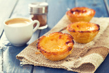 portuguese dessert pastel de nata with cup of coffee