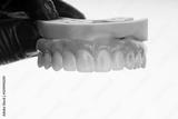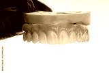 Full dental zirkonium prosthesis on titanium bar stained with stains for ceramic
