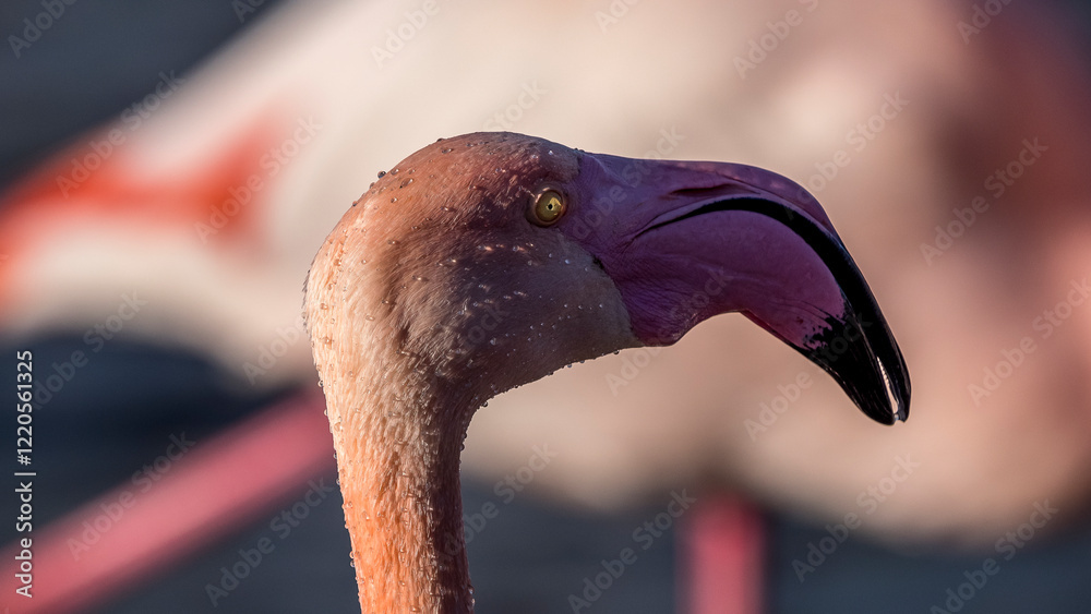 Portrait of a pink flamingo, Pont de Gau, Camargue, France