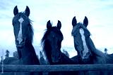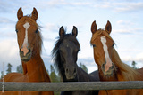Three Yearling Arabian standing together at fence gate.