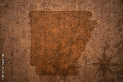 arkansas state map on a old vintage crack paper background