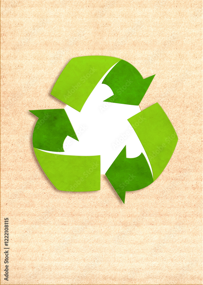 Vertical banner with arrows recycle symbol from recycled paper. Sustainable development of strategy approach to zero waste, responsible consumption. Reuse, renewable resource, eco-friendly concept