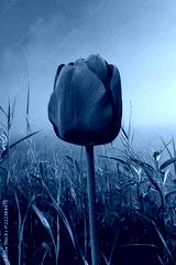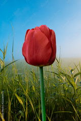 Close up of a red tulip in the springtime garden