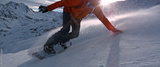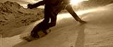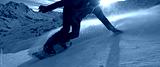 Freeze Motion of Running Snowboarder in Fresh Powder Snow. Austria Alps, Europe.