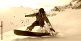 Freeze Motion of Running Snowboarder in Fresh Powder Snow. Austria Alps, Europe.