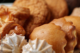 Freshly baked cookies and pastries arranged on a plate in a cozy kitchen setting during afternoon tea