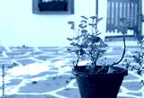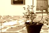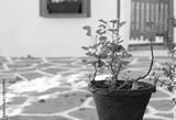Red flowerpot against white wall