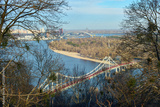 Scenic Autumn View of the Dnieper River in Kyiv, Ukraine – Peaceful Panoramic Cityscape with Pedestrian Bridge, Autumn Trees, Nature, and Tranquil Urban Landscape