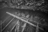 WWII truck inside the ship wreck of SS Thistlegorm - British cargo steamship sunk by German bomber aircraft in the Red Sea in 1941 near Sharm El Sheikh, Egypt. Underwater photography and travel