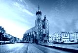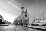 Old city center view with Adam Mickiewicz monument and St. Mary'