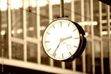 Bahnhofsuhr mit futuristischem Hintergrund
