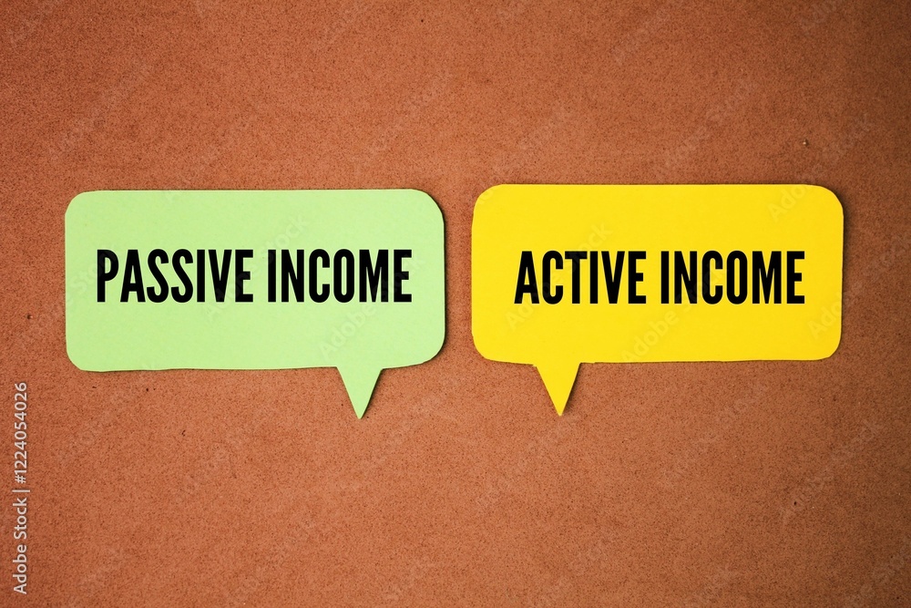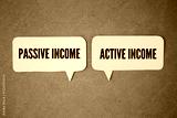 conversation column with the words passive income and active income. Active Income comes from jobs, professional services, or active business operations.