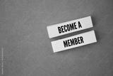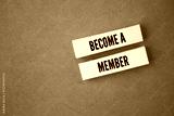 colored paper with the word BECOME A MEMBER. you belong to a group. the concept of being a member or teamwork. Welcome to the team