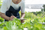 Organic farming, vegetable farm. Farmers recheck quality record on data on checklist. grow naturally, Ecological Biological, Healthy, Technology, non toxic, harvest, scientific , academic..