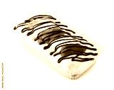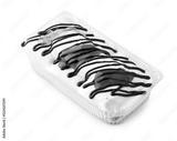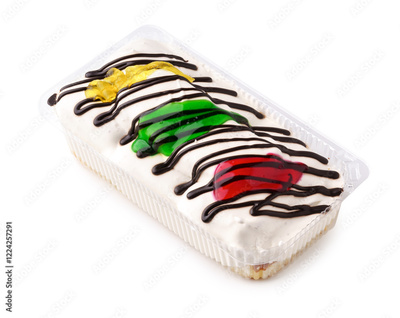 Delicious dessert featuring whipped cream, colorful fruit toppings, and chocolate drizzle in a clear container