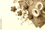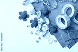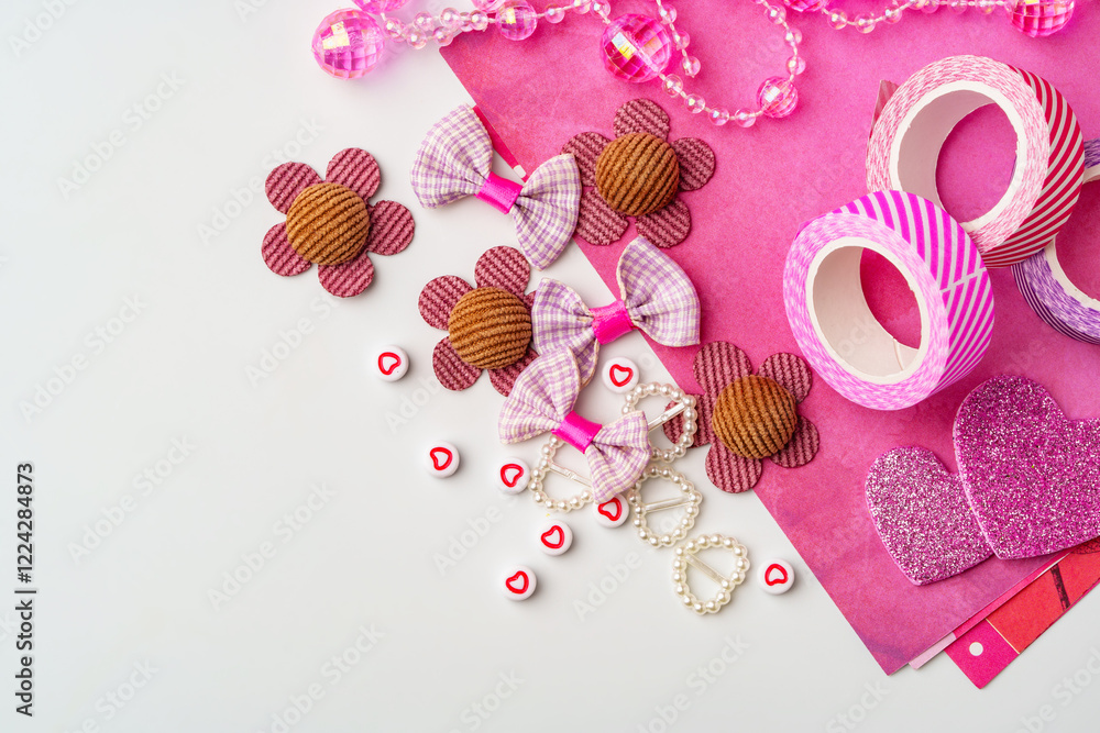 Crafting supplies arranged on a vibrant pink background showcasing decorative items for creative projects