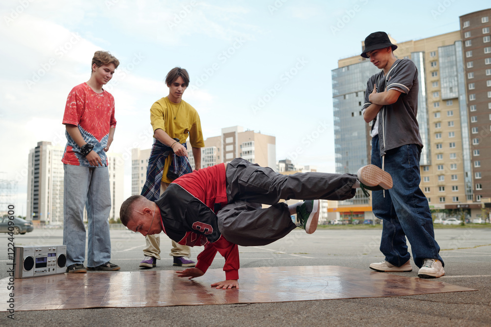 Breakdancing Performers Displaying Street Dance Skills Outdoors