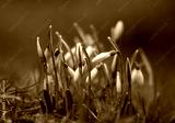 Kwiaty przebiśniegów w pąkach, wiosenne kwiaty.