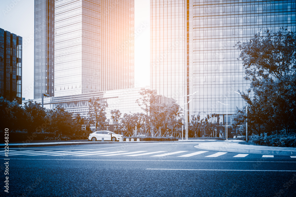 clean empty urban road and modern buildings at a sunny day,shanghai,china