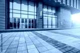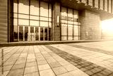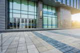 office building entrance with empty brick road,china.