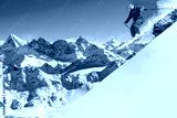 Skiing with amazing view of swiss famous moutains in beautiful w
