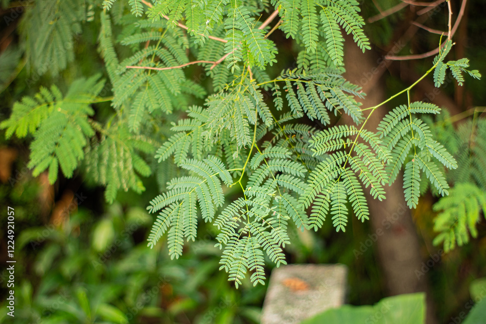 Selective focus of The beautiful fern leaves fresh growth. Fresh green fern leaves (shallow depth of field) with blurred background. Green leaf pattern backgrounds, nature backgrounds and wallpapers