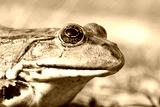 macro portrait of common marsh frog