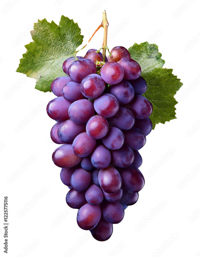Image of a bunch of fresh purple grapes, isolated on a transparent background.