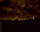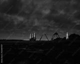 Roadside construction area during sunset with a cloudy sky. 3D render.