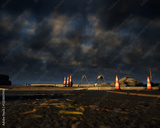 Roadside construction area during sunset with a cloudy sky. 3D render.