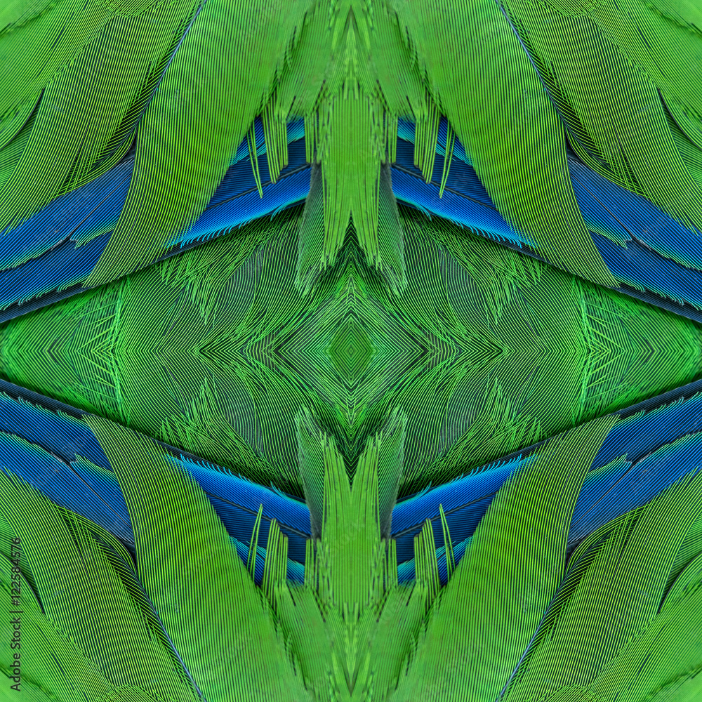 Beautiful pattern abstract background texture made from colorful Amazon parrot feathers
