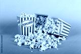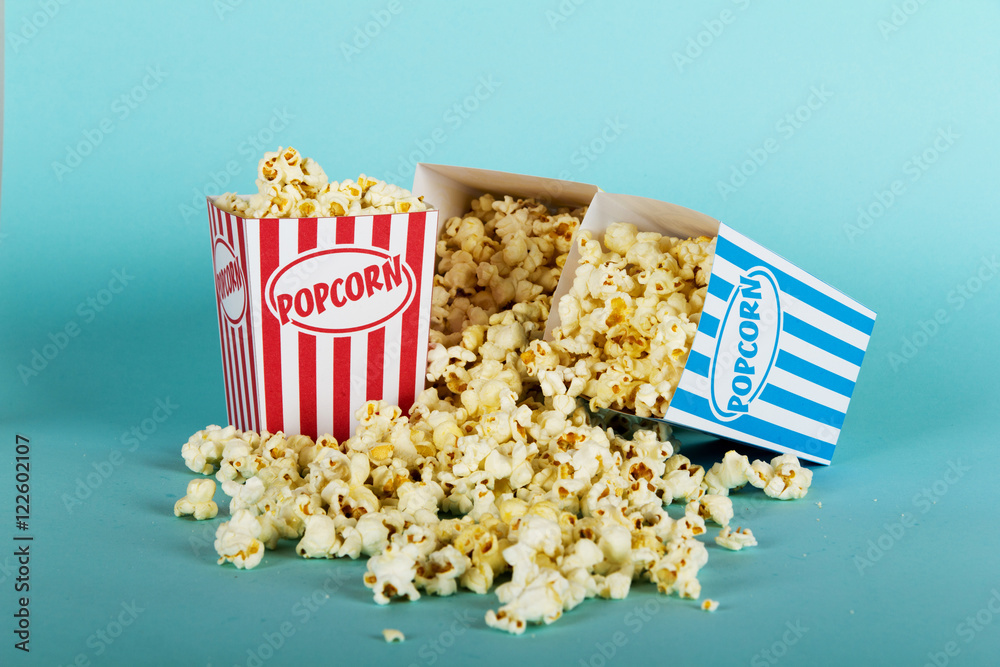 Popcorn bucket against a blue background