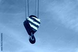 Kranhaken eines historischen Kranes im ehemaligen Handelshafen in Magdeburg vor blauem Himmel