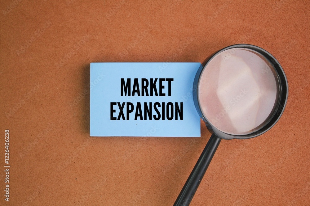 magnifying glass and paper with the word Market Expansion. a growth strategy in which an organization targets existing products to new markets