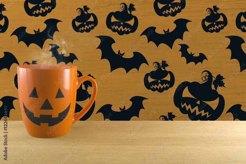 hot halloween ghost cup on purple bat background