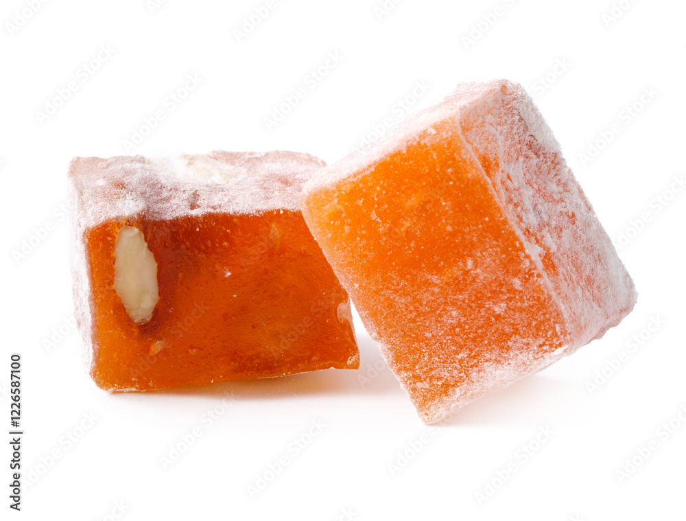Delicious orange flavored turkish delight with nuts, served as a traditional sweet treat