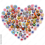 Heart made of colorful glass beads. colored Venetian glass, Murano glass, millefiori. Flat lay, top view
