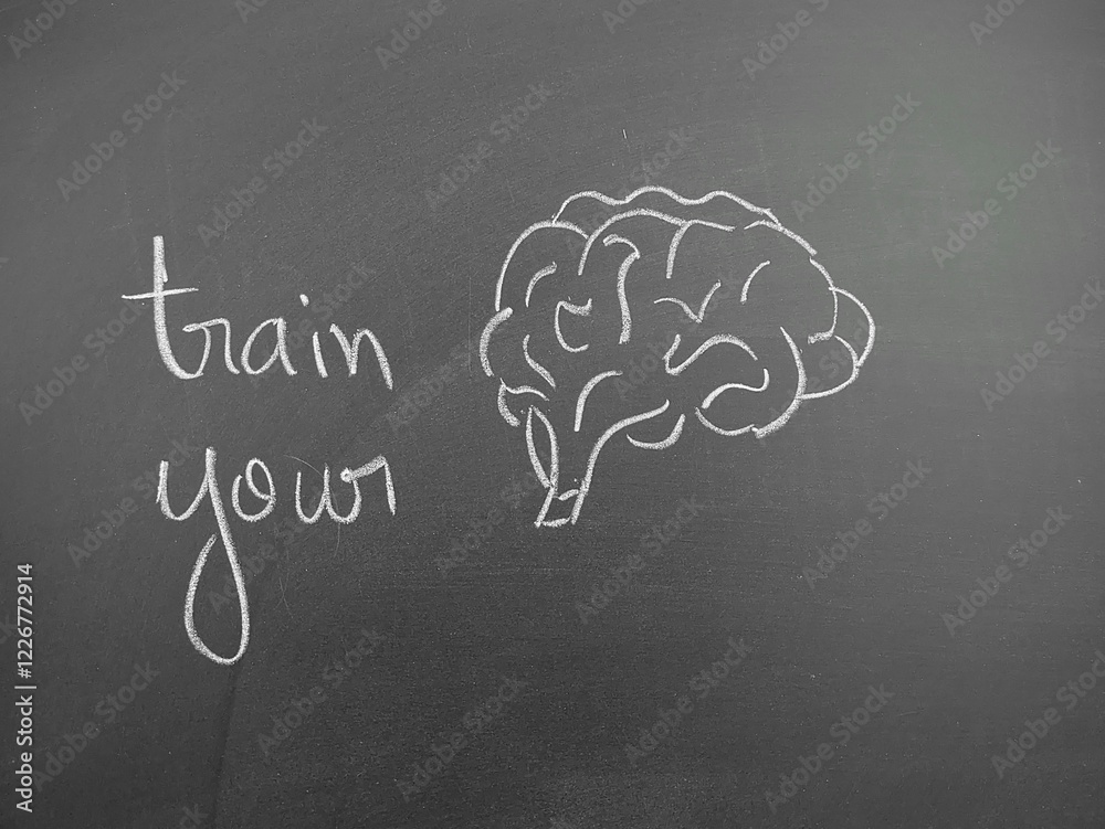 Train your brain chalkboard illustration promoting cognitive exercise