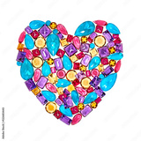 Valentines Day, Love. Fashion Design Gemstone. Fashion luxury glamor colorful placer. Love Concept. Shiny Mosaic Precious stones. Creative Party decoration. Celebration Holiday Art background.