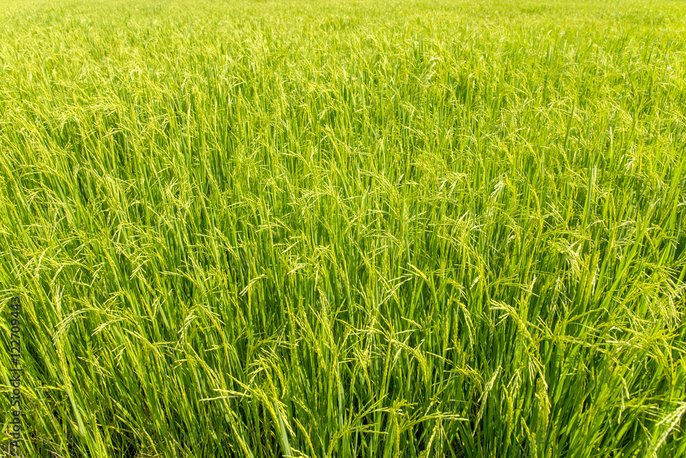 Paddy jasmine rice farm in Thailand ,Green rice fields